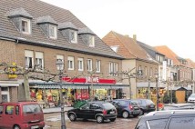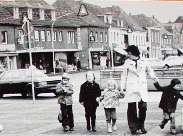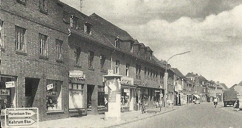 1957 - Standortwechsel vom heutigen Marktpaltz gegenüber an den neuen Standort Mühlenstraße 4 - links Bekleidungsgeschäft Anders - rechts Lebensmittelgeschäft Joh. Schallberger vorm. Claahsen & Meyer