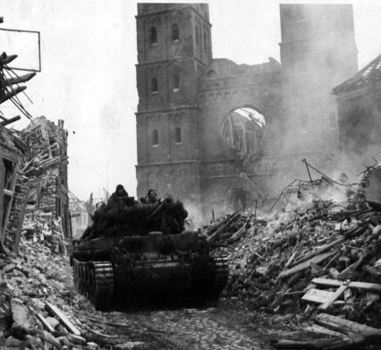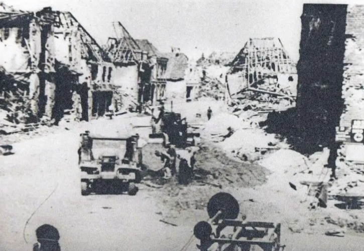 26.02.1945 - Das Kolonialwarengeschäft - Markt 8 (hinter der Kirche rechts) ist vollkommen zerstört