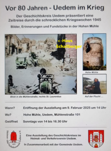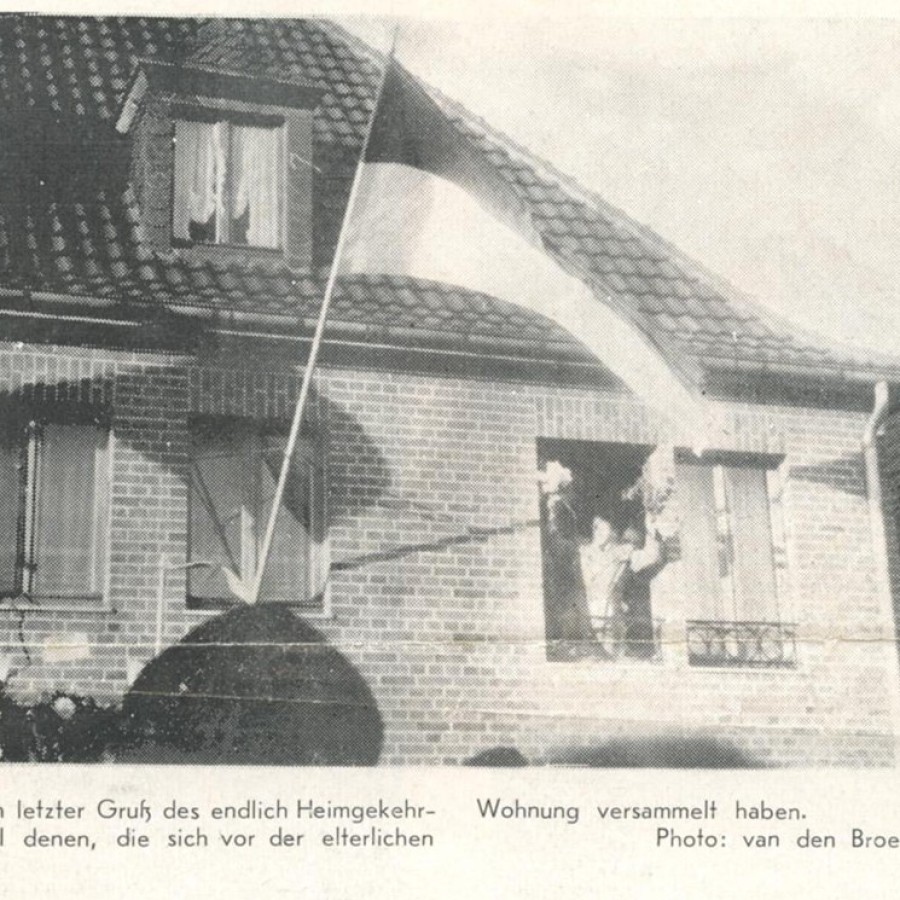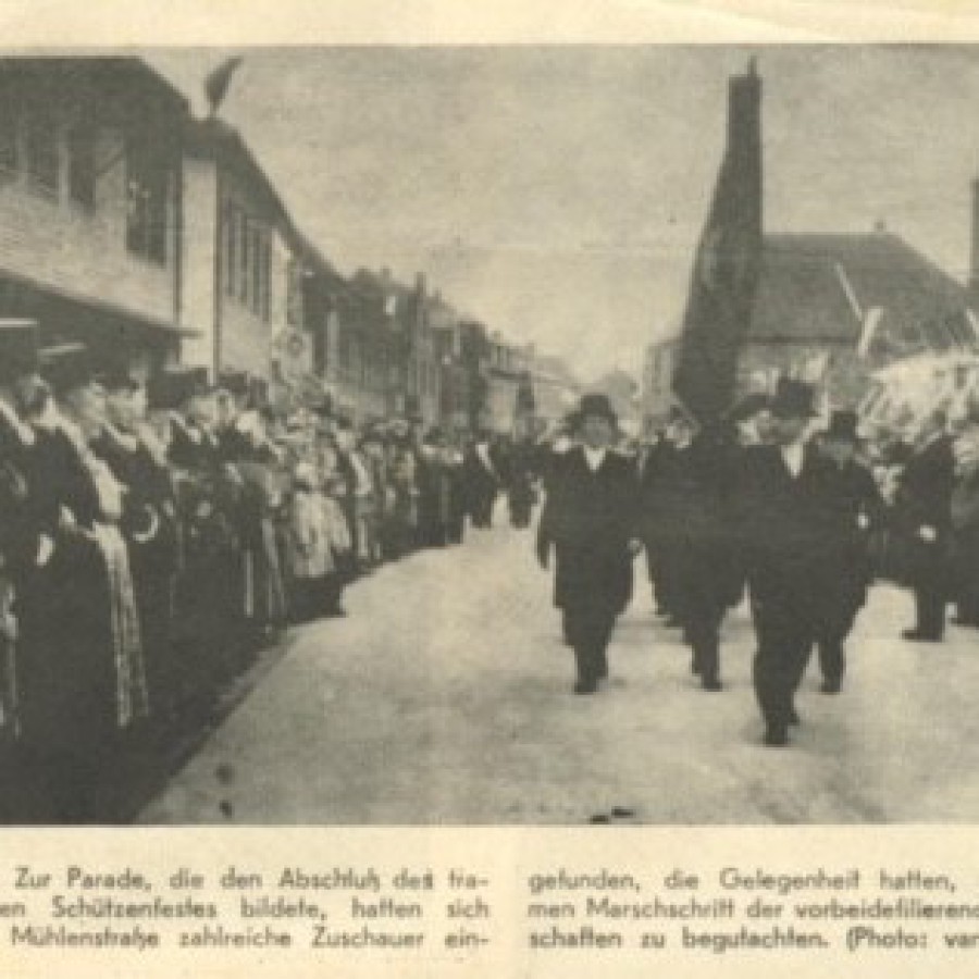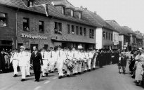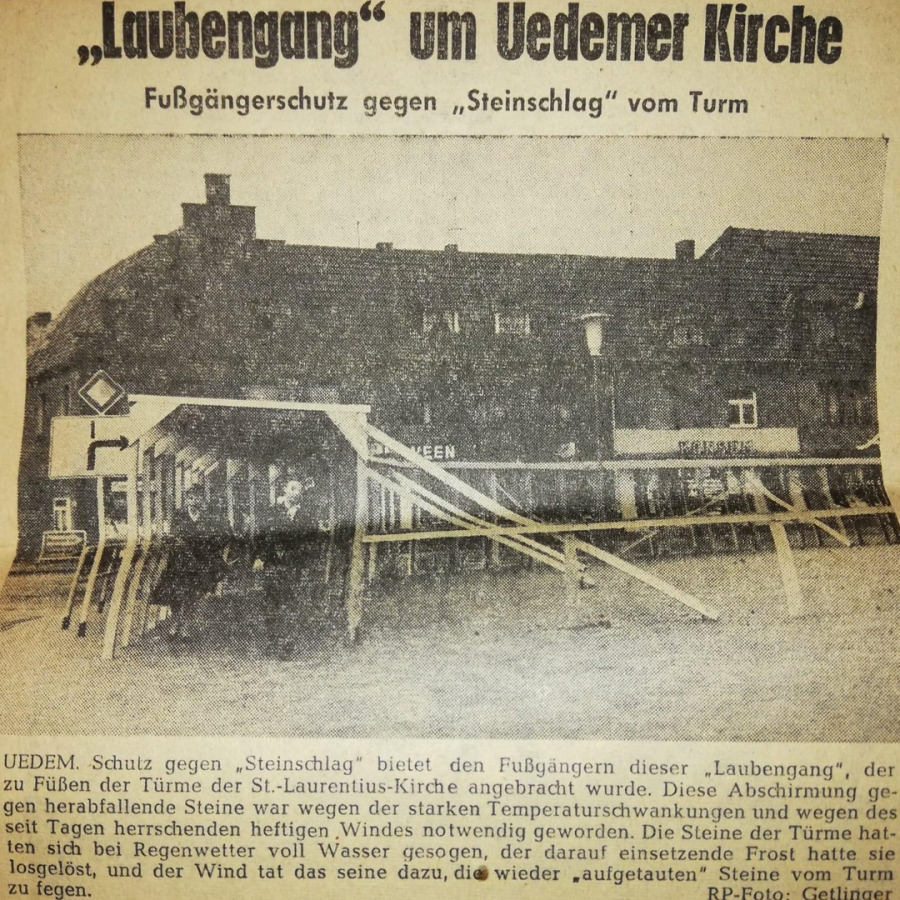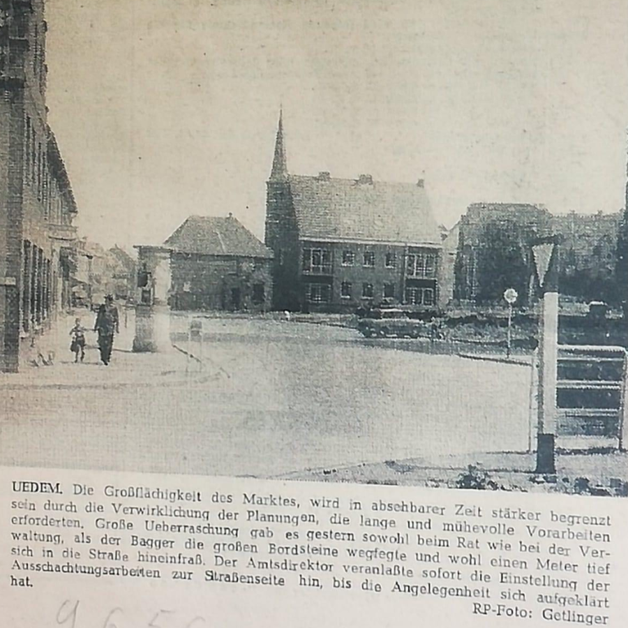 Von links oben Bild 1 Heimkehrer Thelen 1955 - Bild 2 Schützenumzug 1955 - Bild 3 -5 Großflächiger Marktumbau 1956 - Bild 6 Laubengang / Steinschlagschutz Uedmer Kirche 1961